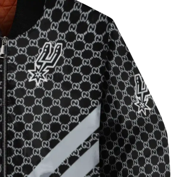 Uncover the details that make this San Antonio Spurs Triple Side Stripes Silver Black Bomber Jacket a truly exceptional piece.