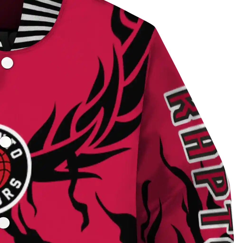 Here’s a closer look at what makes our Custom Toronto Raptors Winged Blaze Red White Varsity Jacket stand out:
