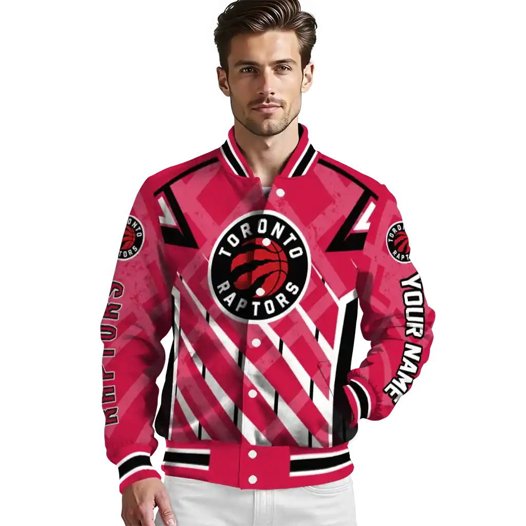 Customized Toronto Raptors Chevron Angles Red Varsity Jacket