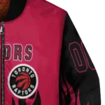 Uncover the details that make this Customized Toronto Raptors Flame Border Red Black Bomber Jacket a truly exceptional piece.