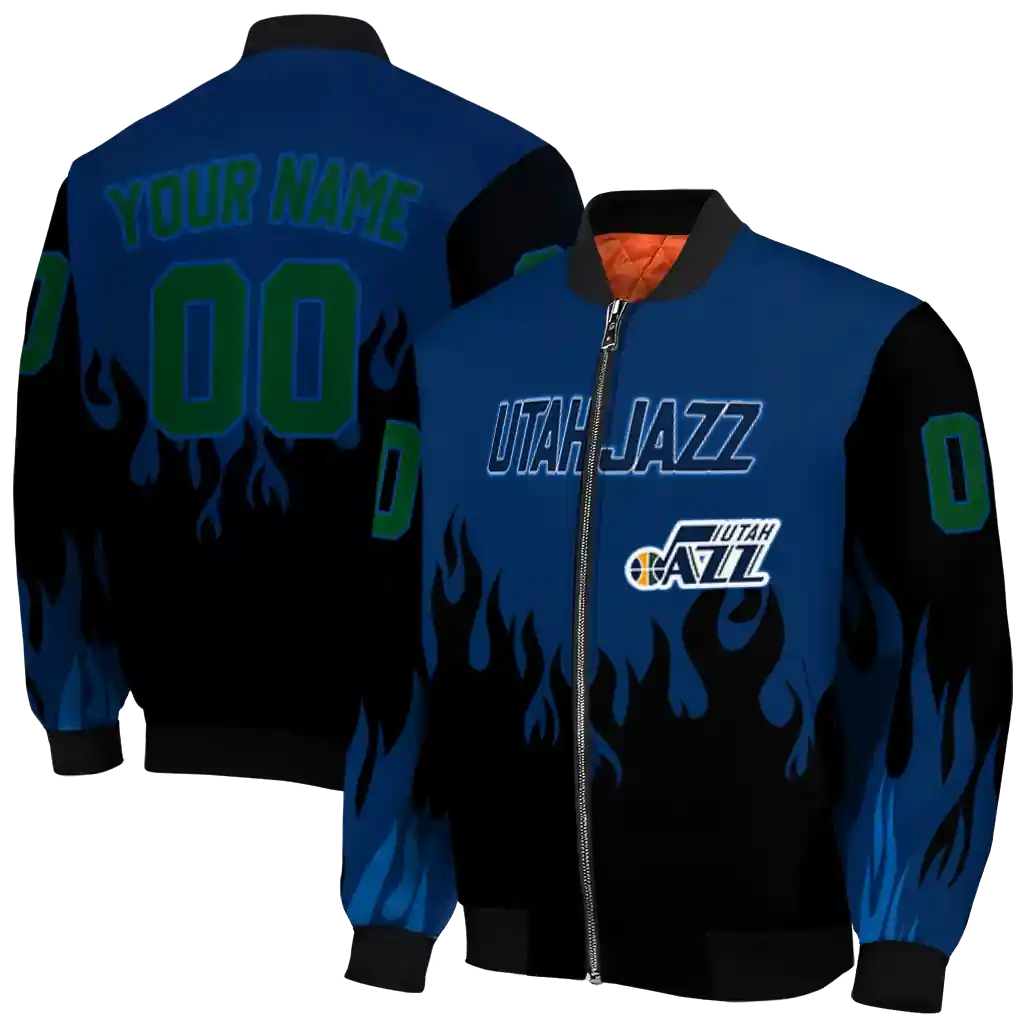 Custom Utah Jazz Flame Border Navy Black Bomber Jacket