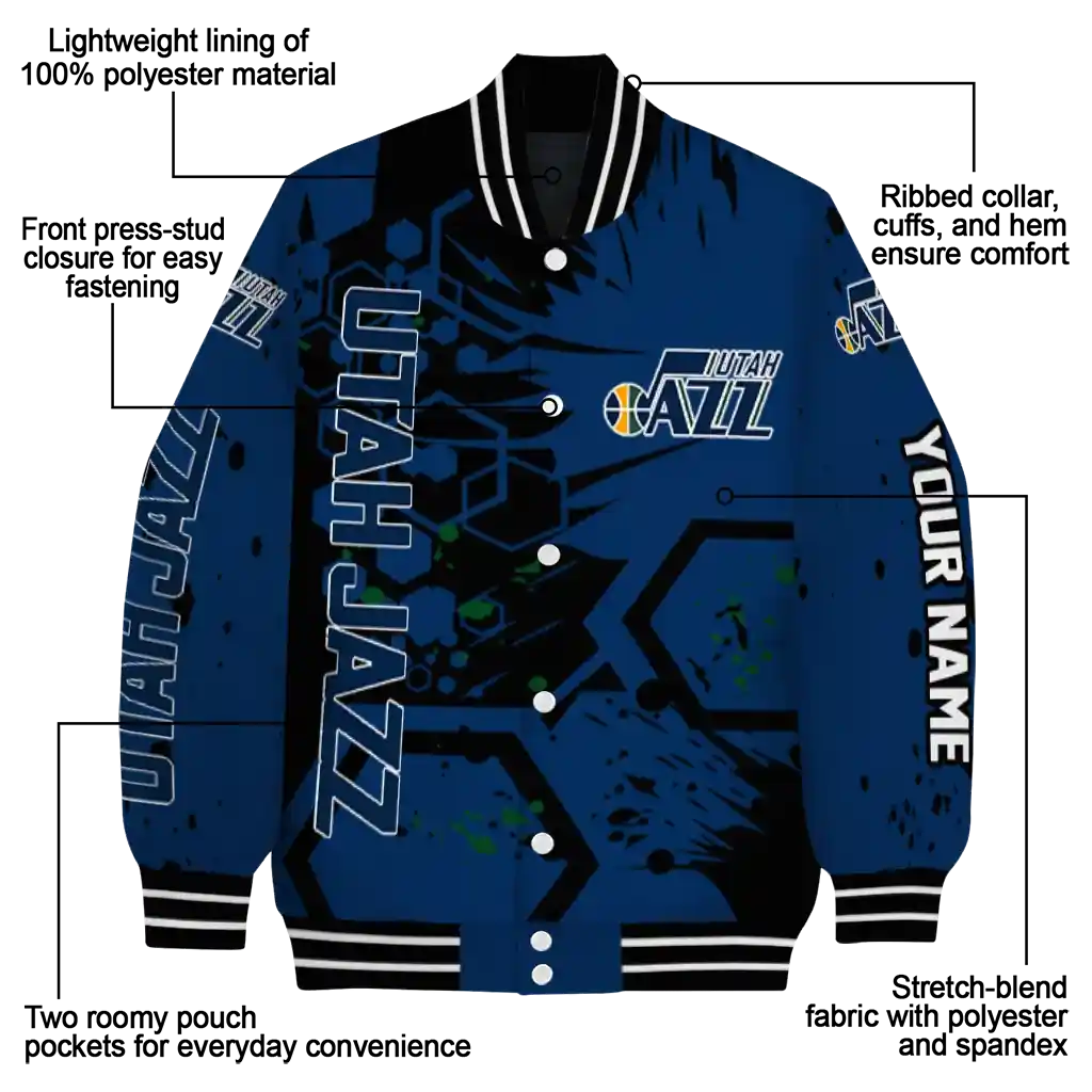 Custom Utah Jazz Hexagon Cluster Navy Black Varsity Jacket