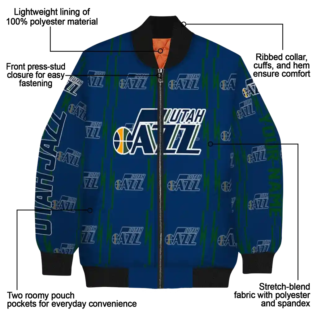 Uncover the details that make this Customized Utah Jazz Bolt Stripe Navy Bomber Jacket a truly exceptional piece.