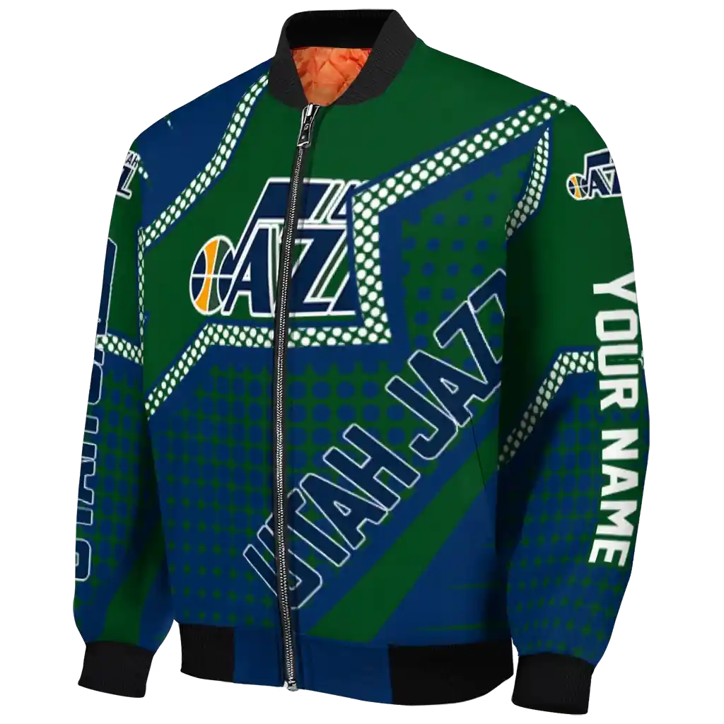 For the discerning NBA fan who values elevated style, this Personalized Utah Jazz Chevron Angles Navy Bomber Jacket from Utah Jazz Jackets’s NBA Fan Pro boasts premium construction for lasting comfort and a proud display of team spirit. Its distinctive design and superior quality offer exceptional value, allowing you to wear your fandom with the same pride as your favorite jersey.
