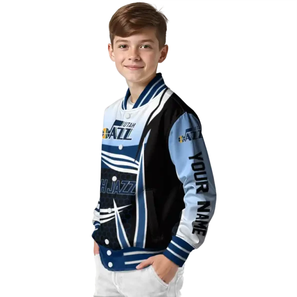 A true must-have for the sophisticated NBA enthusiast, this Personalized Utah Jazz Hexagon Grid Navy Varsity Jacket from Utah Jazz Jackets offers quality construction for durable, all-day comfort – ideal for showcasing your team pride. Its unique design and superior build provide exceptional value, making it the perfect way to embody your team identity like an iconic jersey.
