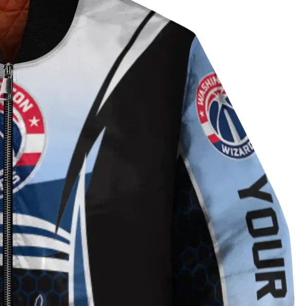 Uncover the details that make this Custom Washington Wizards Mesh Effect Blue Black Bomber Jacket a truly exceptional piece.