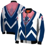 Uncover the details that make this Custom Washington Wizards V Stripes Blue White Bomber Jacket a truly exceptional piece.