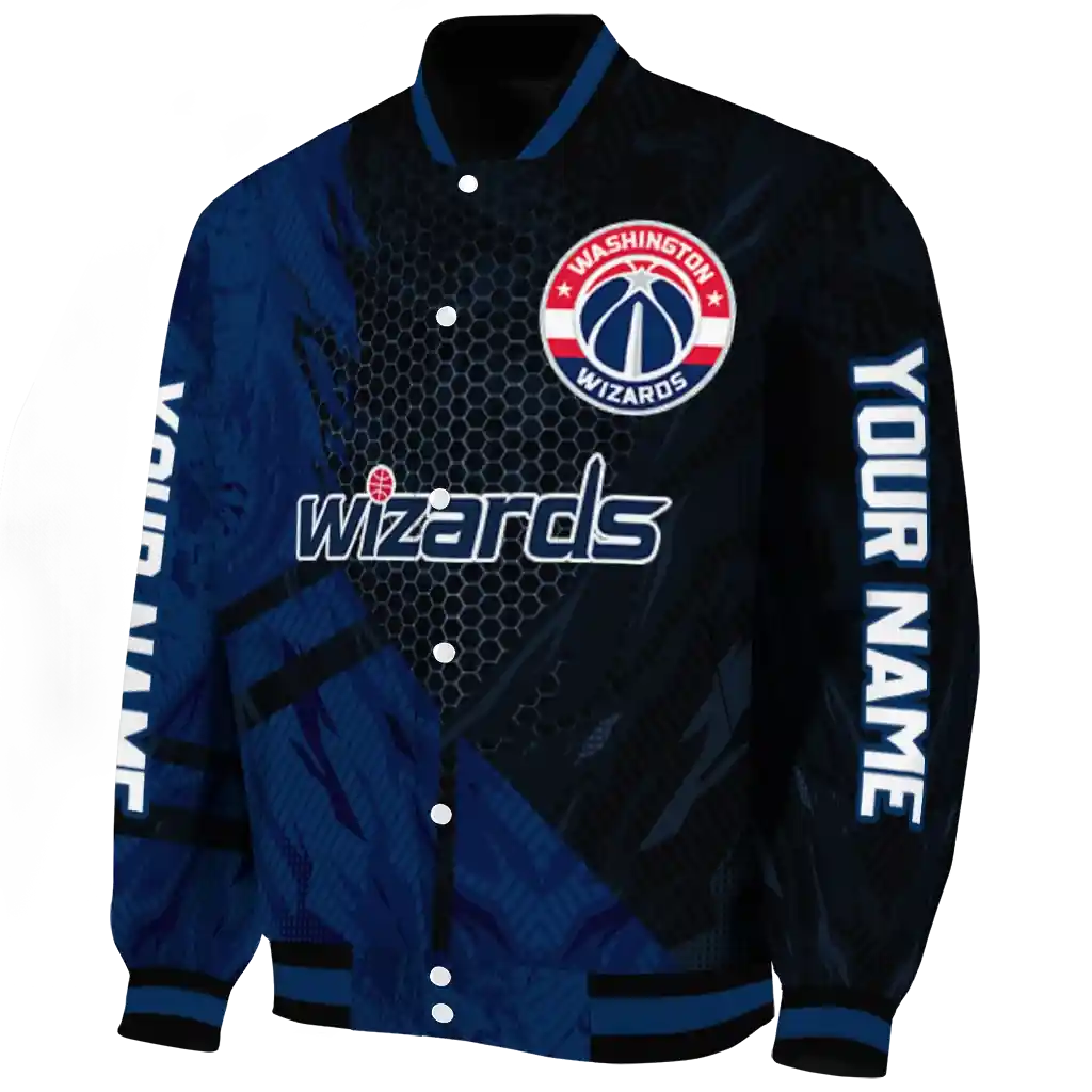 Customized Washington Wizards Hexagon Mesh Blue Black Varsity Jacket