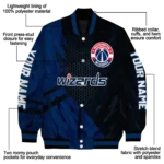 For the discerning NBA fan who values elevated style, this Custom Washington Wizards Spider Mark Blue Bomber Jacket from Washington Wizards Jackets’s NBA Fan Pro boasts premium construction for lasting comfort and a proud display of team spirit. Its distinctive design and superior quality offer exceptional value, allowing you to wear your fandom with the same pride as your favorite jersey.