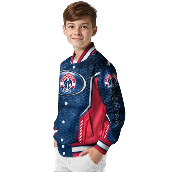 For the discerning NBA fan who values elevated style, this Customized Washington Wizards Hexagon Mesh Blue Black Bomber Jacket from Washington Wizards Jackets’s NBA Fan Pro boasts premium construction for lasting comfort and a proud display of team spirit. Its distinctive design and superior quality offer exceptional value, allowing you to wear your fandom with the same pride as your favorite jersey.